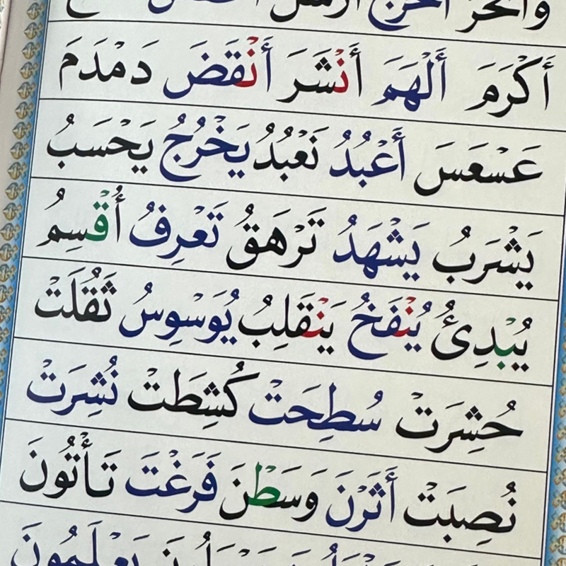 Til brug for at læse den Hellige Koran med korrekt accent og Tajweed. Indeholder næsten alle udtale-regler for recitation af den Hellige Koran.