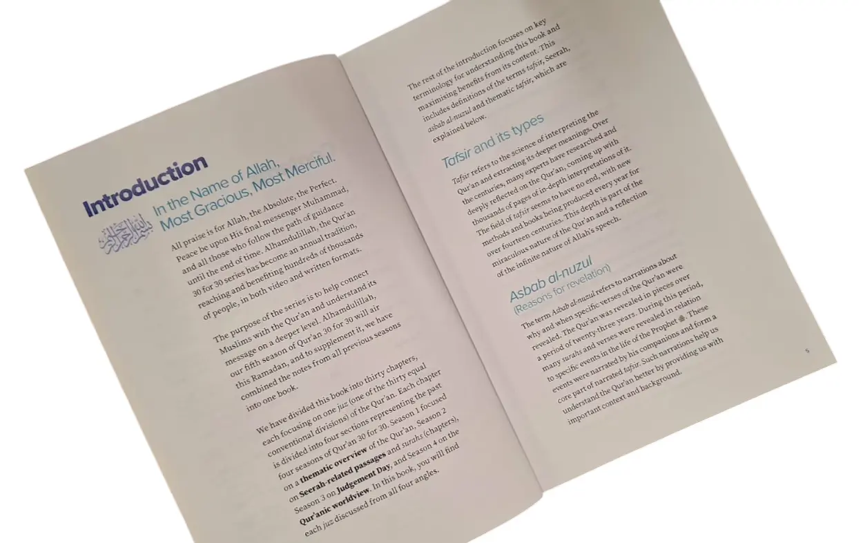 This book compiles many of the key insights discussed in the first 4 seasons of the Qur'an 30 for 30 video series and presents them in an organized and easy to read way. Explore how some of the most important recurring themes of the Qur'an -- the Seerah of the Prophet ?, Judgement Day, and the Qur'anic worldview -- come together in each juz to provide us guidance for every aspect of life.