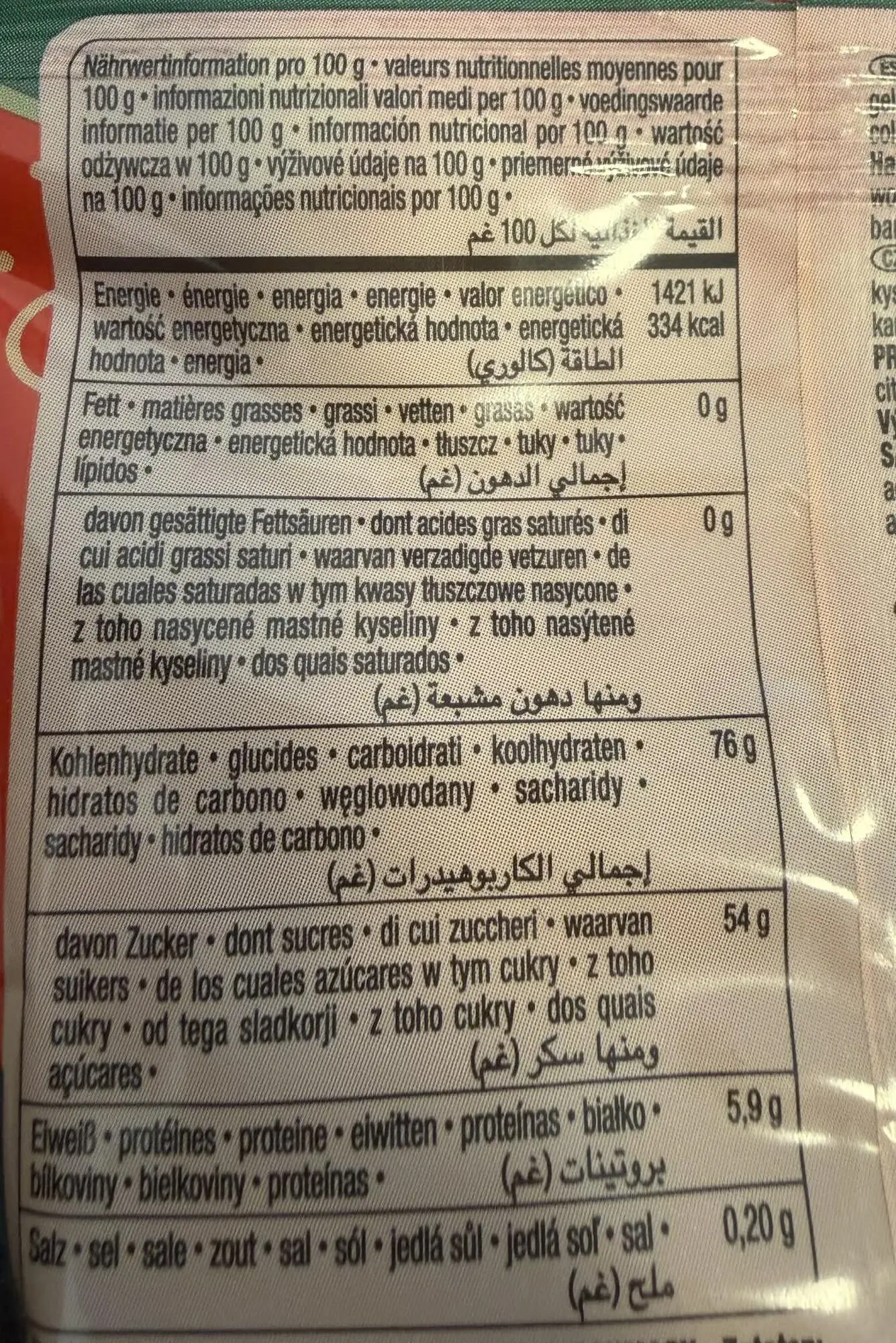 • Teksturen er blød og sej at tygge, typisk med den karakteristiske vingummi-konsistens.