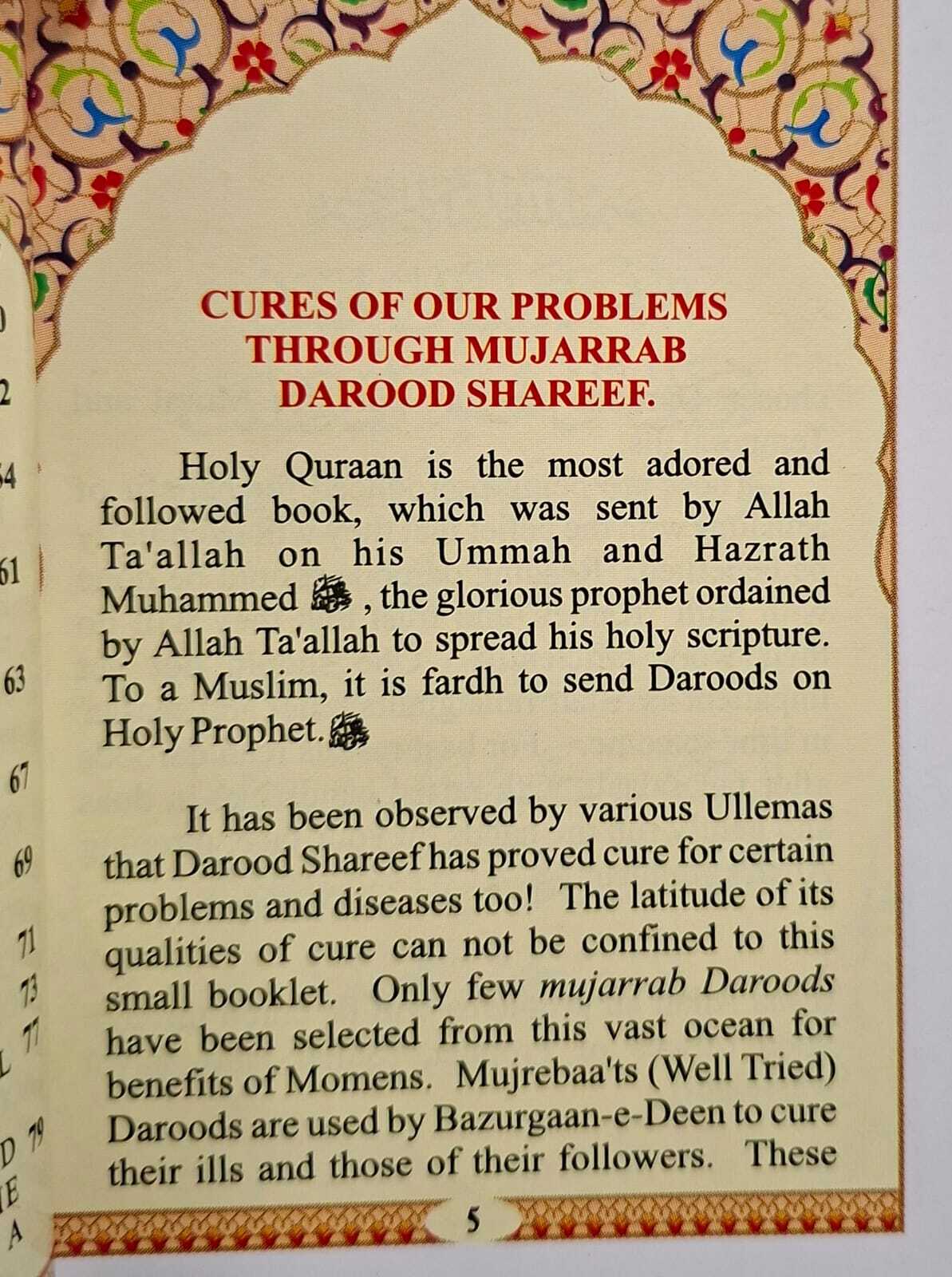 Pocket book with darood shareef and it's benefit mentioned on it with its verses.