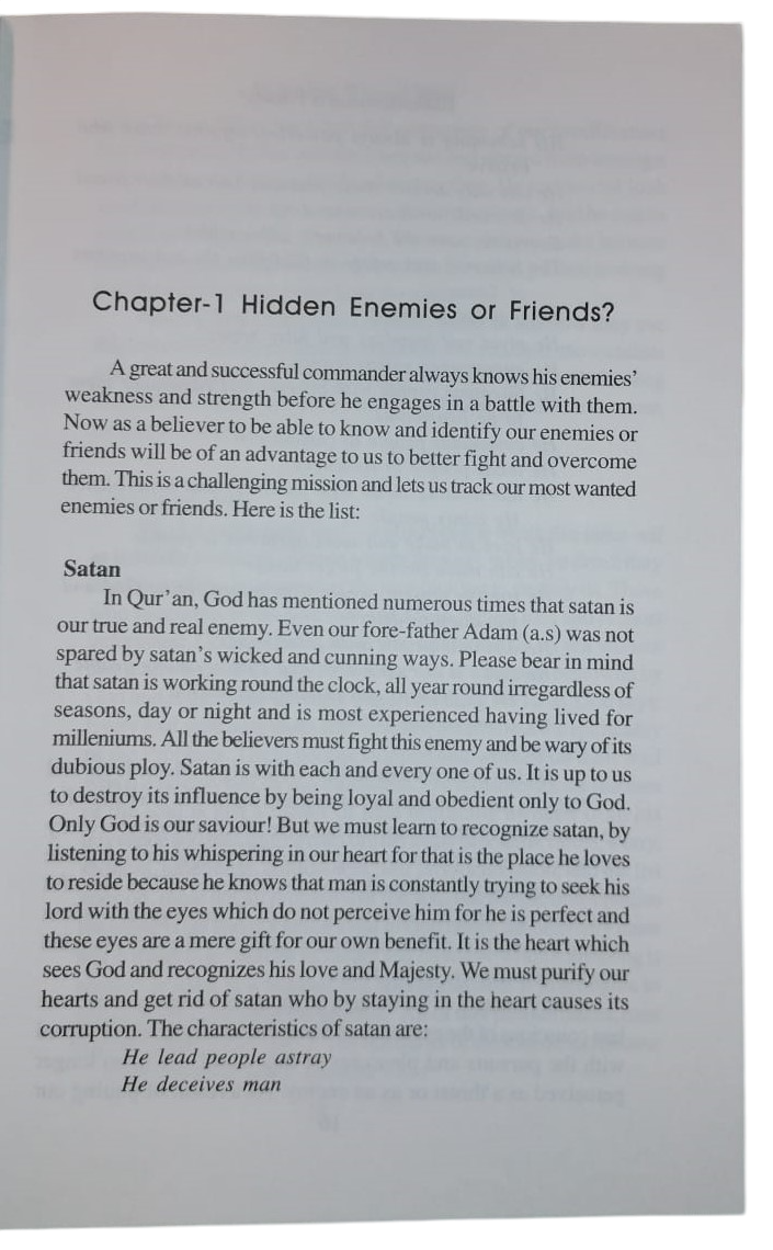 A great and successful commander always knows his enemy’s weakness, and strength before he engages in a battle with them. Satan is the fountainhead of evil and harm. He is a leader for the destruction of this life and the next. Now as a believer to be able to know and identify our enemies or friends will be of an advantage to us to better fight and overcome them. This book warns a believer against Satan.
