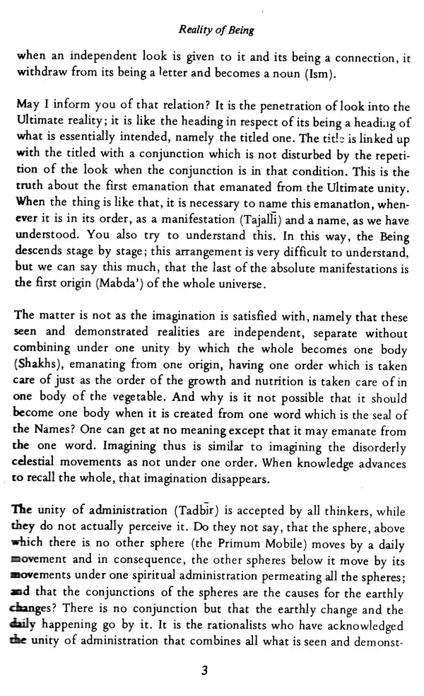 In this work, Shah Waliyullah has discussed many philosophical points He does not take philosophy as probing into the subtleties of speculation in which philosophers are interested, or knowing the reality of the disclosures made by the mystics in an intuitive state of mind. Philosophy to him is a science that guides man in his living and towards attaining knowledge of sciences to be acquired by him. He does not consider it to mean creating a theoretical picture in the mind, nor does he consider it creating remote possibilities and subtleties which are of no avail. He thinks it to be something which satisfies and convinces the mind. Besides, it may not be a reserve merely of the select few. The late Maulana Ubaidullah Sindhi used to recommend this book to those who are interested in understanding philosophy.