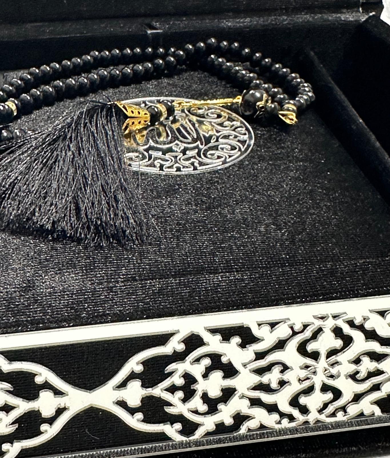 Flot velour gaveæske med guld design (21cm x 21cm)