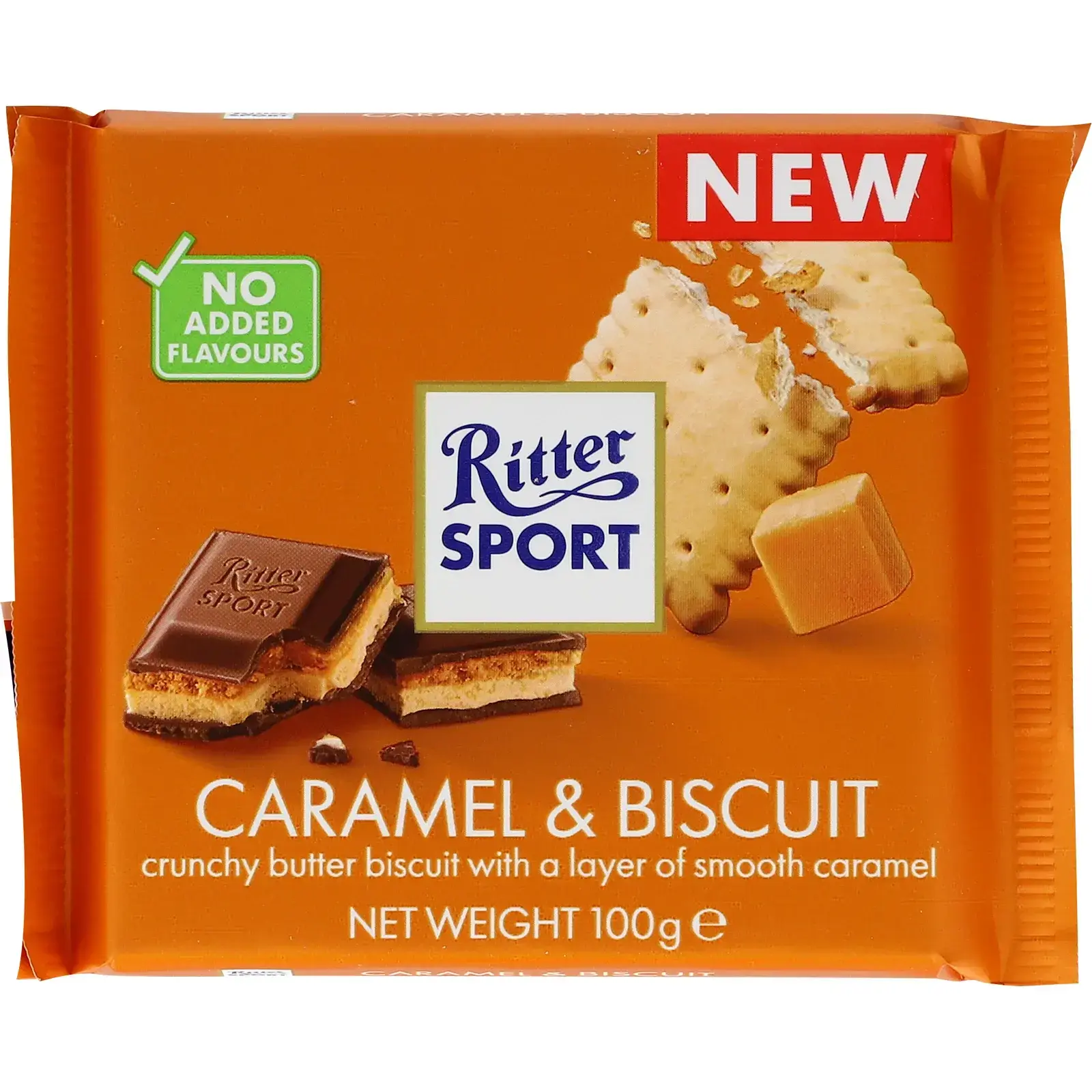 Fyldig mælkechokolade med blød karamel og sprøde kiksestykker. En lækker kombination af sødme og knas – perfekt til en velfortjent pause.