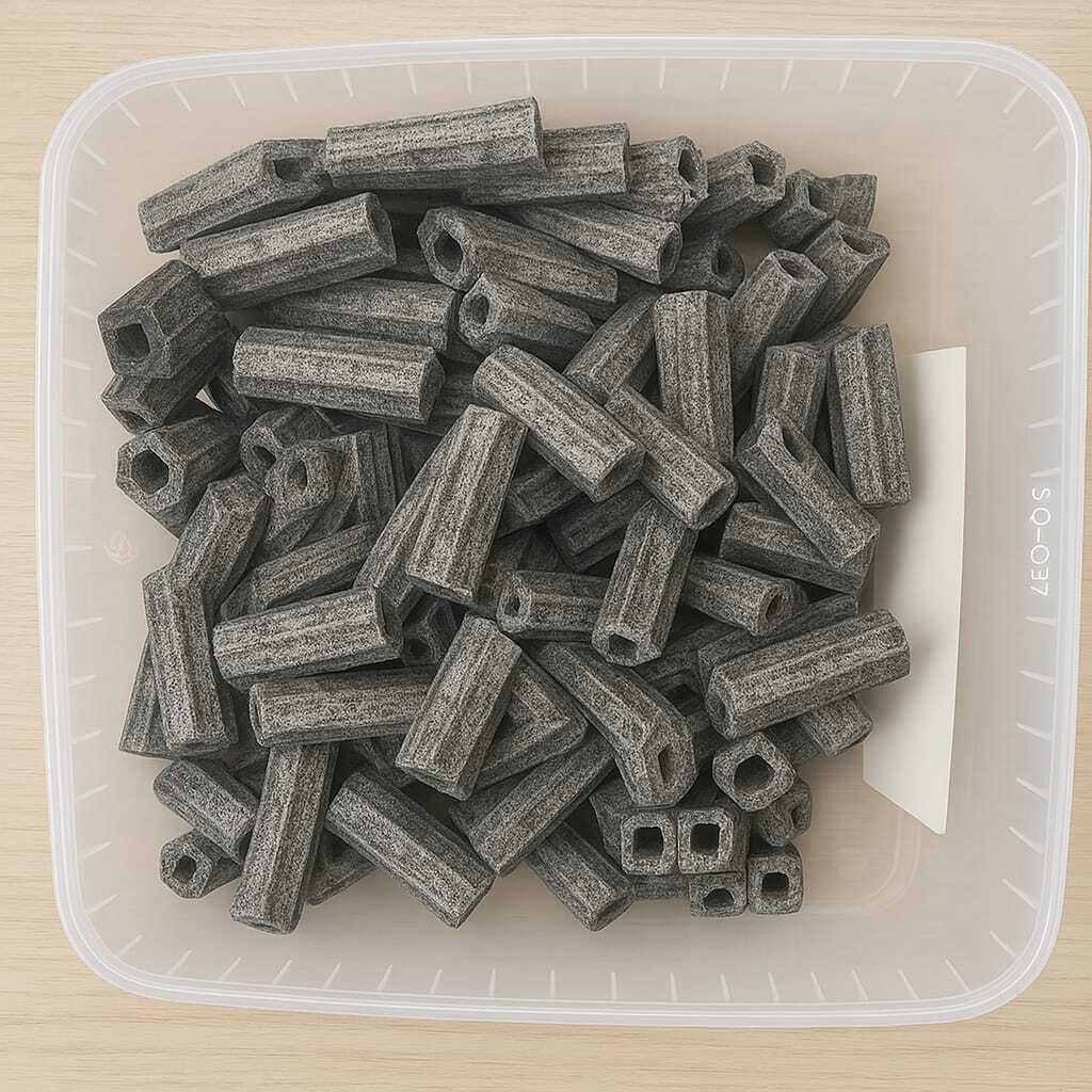 Ingredienser: Hvedemel, sukker, glukose-fruktosesirup, ammoniumklorid (=salmiak) 6,3%, lakridsekstrakt, salt, farvestof (E153) og aromaer.