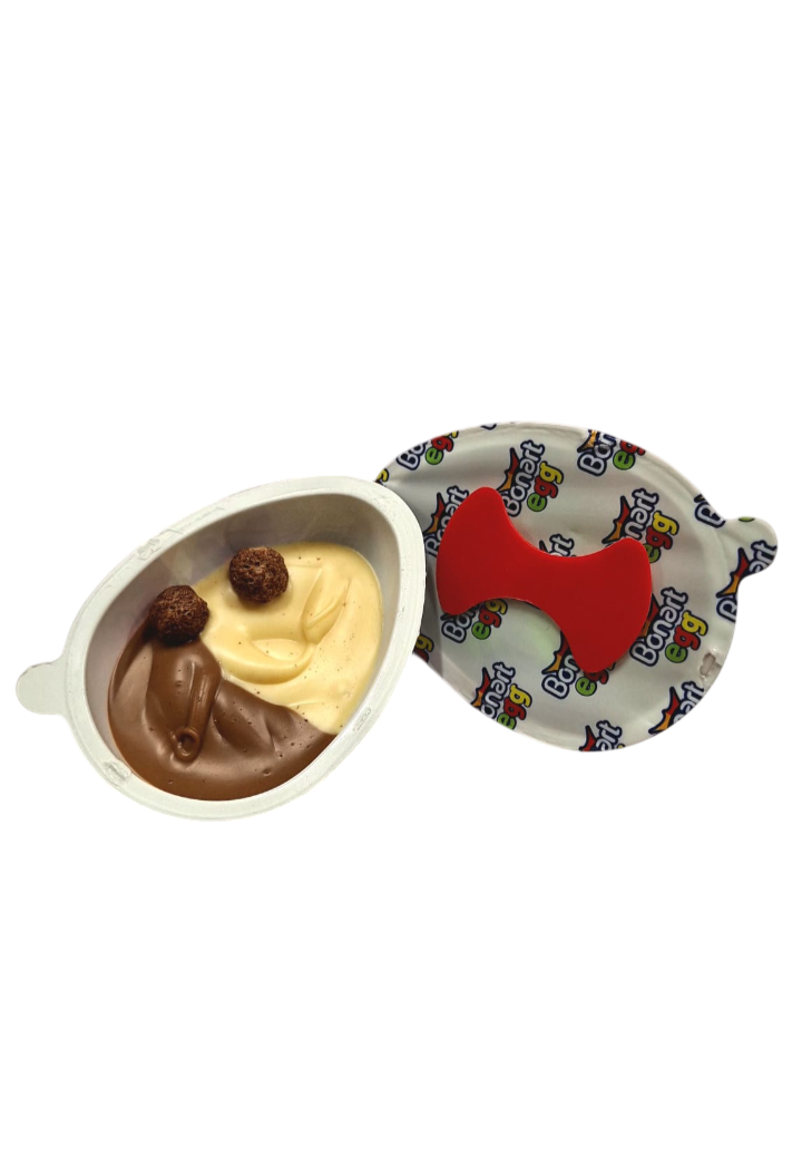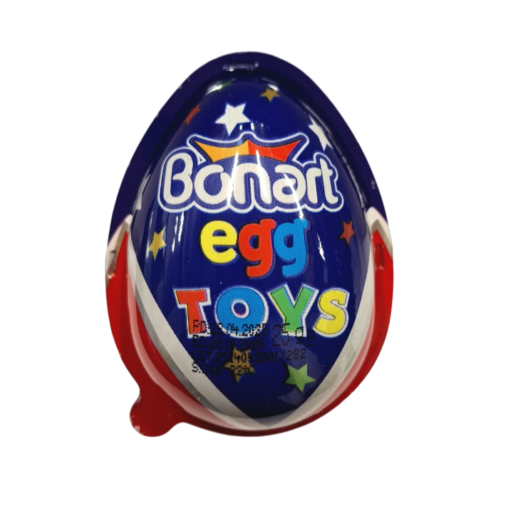 Bonart chokoladeæg er en sjov og lækker godbid, der kommer med et overraskelseslegetøj indeni. Chokoladeægget vejer 25 gram og er lavet med ingredienser af høj kvalitet for at sikre en fyldig og blød smag. Ægget er pakket ind i farverig folie og er perfekt til både børn og voksne, der elsker lidt spænding og sødme i deres liv.