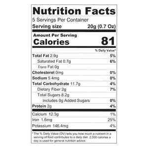 Dadler, havregryn (gluten), solsikkekerner, rosiner, jordnøddesmør (jordnødder), mørk chokolade (soja, kan indeholde mælk), kakao, ristet kokos, mandler (nødder), sirup, vegetabilsk olie (solsikke), citronsaft.