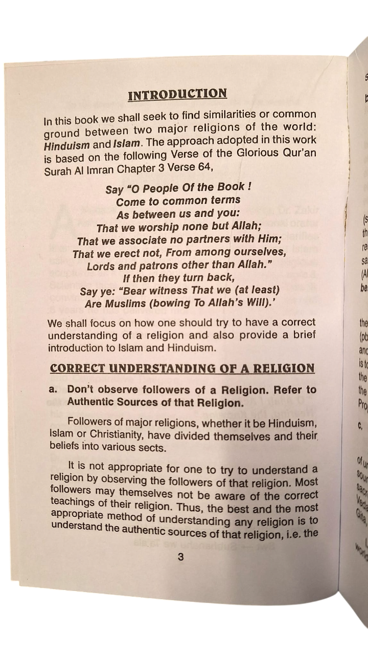 In this book we shall seek to find similarities or common ground between two major religions of the world: Hinduism and Islam. It focus on how one should try to have a correct understanding of a religion.