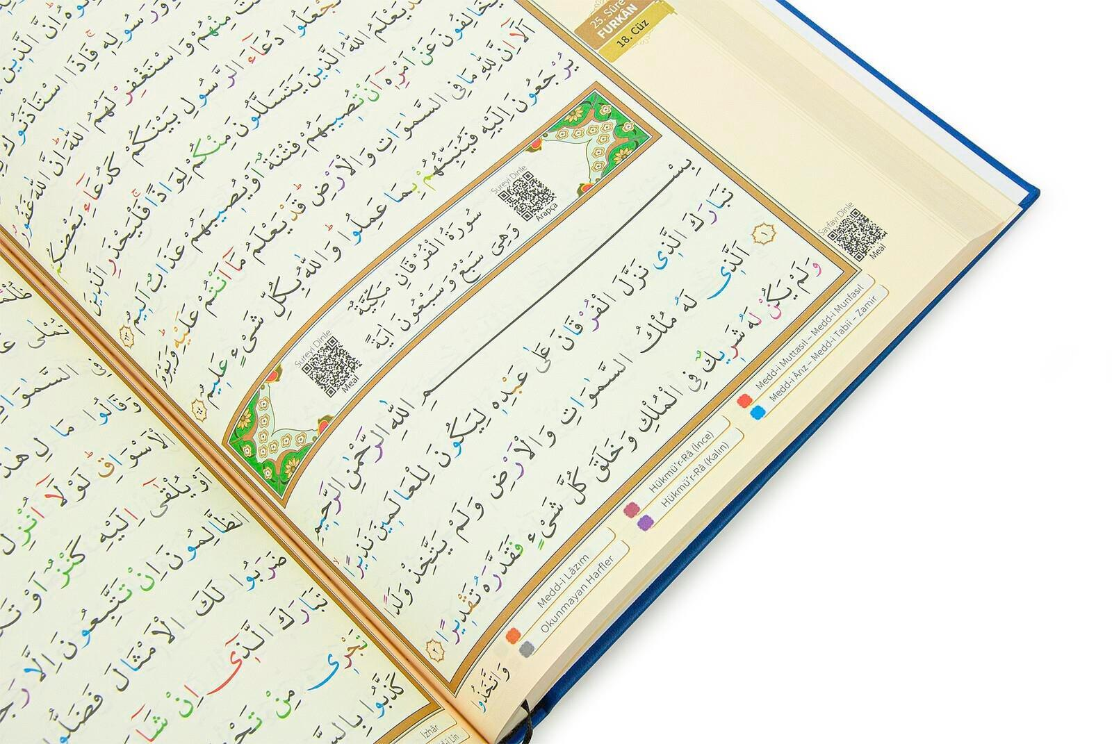 Koranen er udstyret med QR-kodeteknologi, som giver mulighed for at få ekstra hjælp og lydrecitation direkte via mobil eller tablet, en stor fordel for både begyndere og øvede.