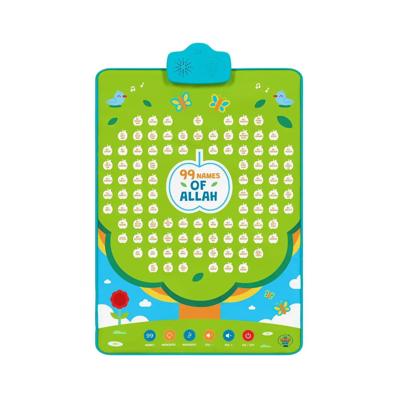 Størrelse: 42 x 58 cm Funktioner du vil elske: Tryk for at lære – Rør ved væg kunsten for at høre hvert navn. Memoriserings-tilstand – Gentag hvert navn tre gange for at lære det udenad. Nasheed indbygget – Fire smukke nasheed som barnet kan nyde. Fjernbetjening – Skift funktioner fra hvor som helst i rummet. Elegant