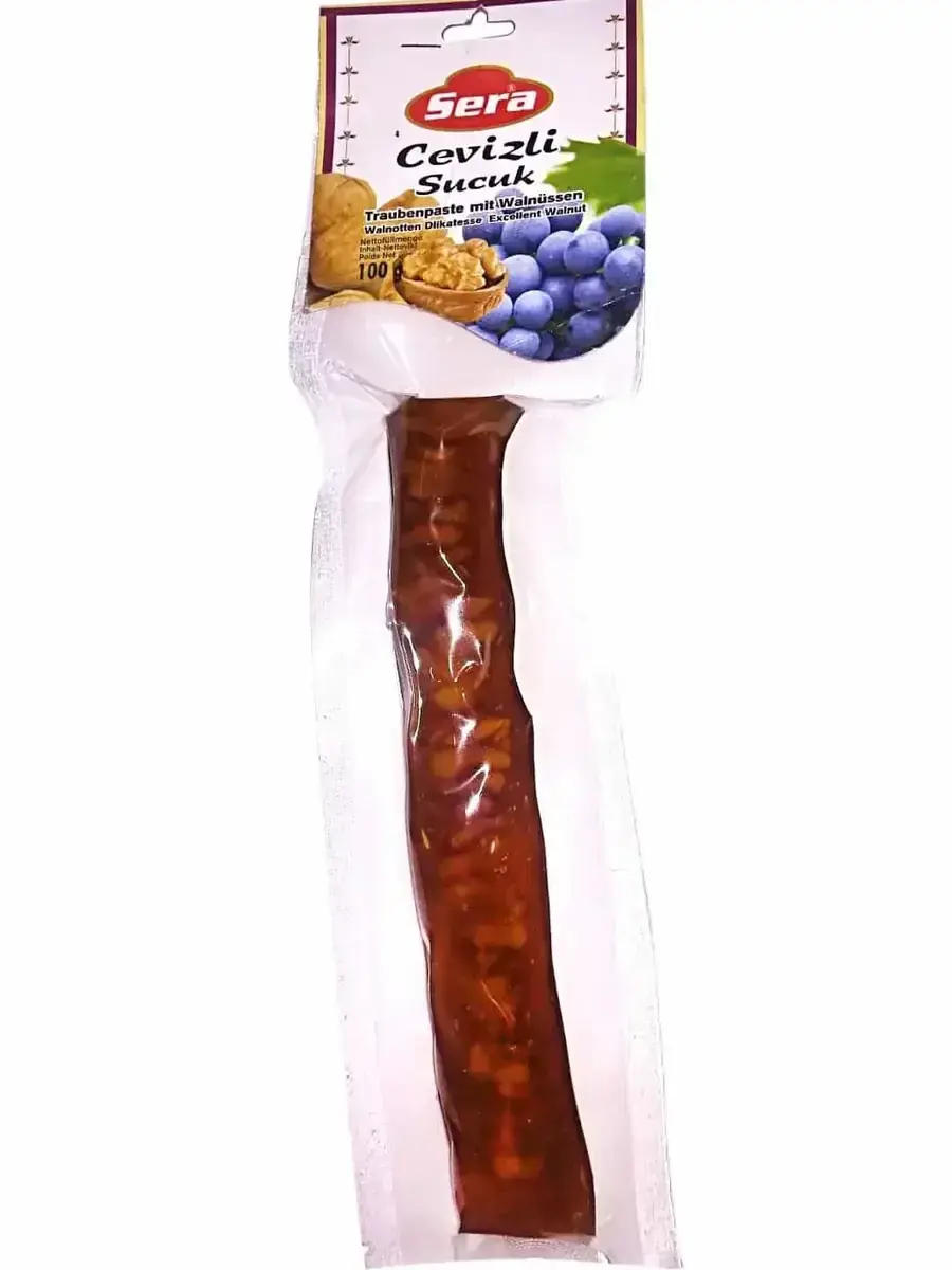 Valnødde- og druesiruppølse er en traditionel anatolsk delikatesse, fremstillet af friske valnødder og druesirup efter gamle metoder. Perfekt som snack eller som dekoration på desserter.